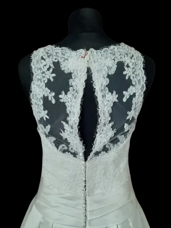 Robe de mariée White OneCouleur : ivoireEtat : seconde mainTaille : 38❤ Joli bustier coeur habillé d'appliques de dentelle, large ceinture drapée. Dos bulle. Jupe en satin duchesse.