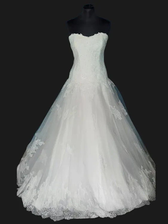 Robe de mariée CymbelineCouleur : ivoireEtat : neufTaille : 42❤ Robe princesse avec appliques de dentelles sur la jupe. La ceinture se noue dans le dos. Peut se porter avec ou sans ceinture.